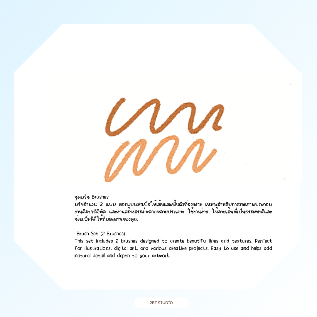 ชุดบรัชสำหรับ Procreate จำนวน 2 บรัช ออกแบบมาเพื่อสร้างเส้นและพื้นผิวที่สวยงาม เหมาะสำหรับการวาดภาพประกอบ งานศิลปะดิจิทัล การออกแบบคาแรกเตอร์ และงานสร้างสรรค์ต่าง ๆ