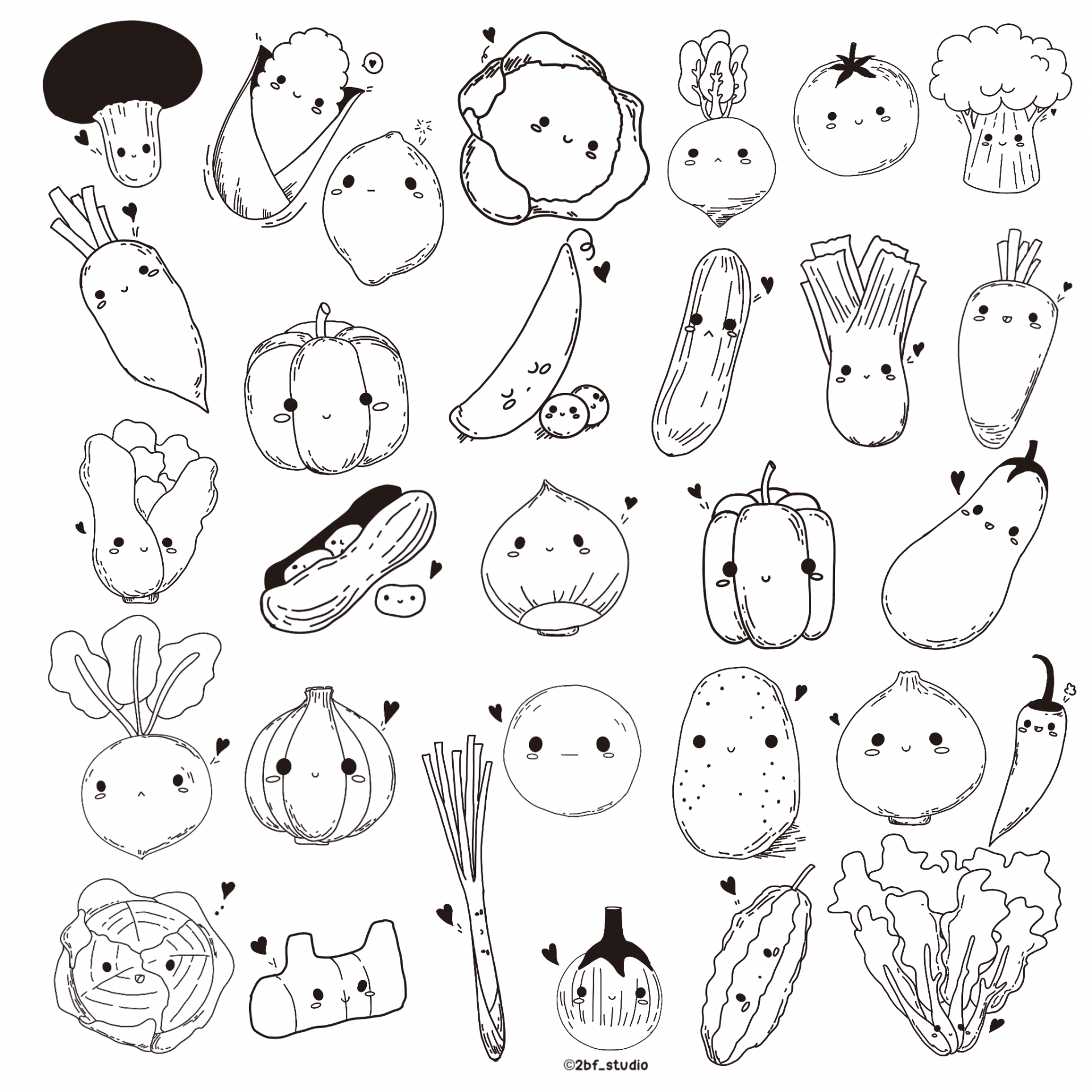 Twobefriend Vegetable 30 Stamp Set |PROCREAT BRUSHED|